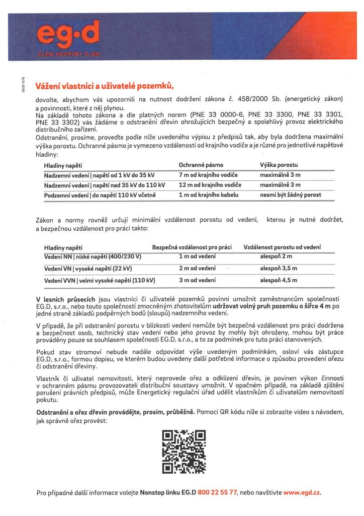 Upozornění vlastníkům či uživatelům nemovitostí (pozemků) na potřebu ořezu, příp. odstranění dřevin